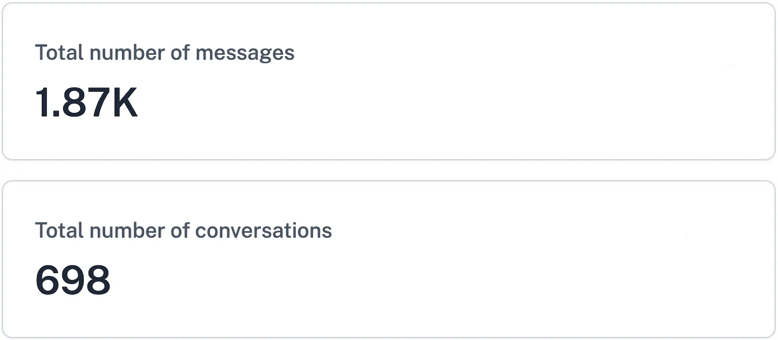 Conversations handled per day: 5.96 (698 total conversations over the past 117 days) shows that, on average, 6 conversations have been handled per day each day, including the weekends.